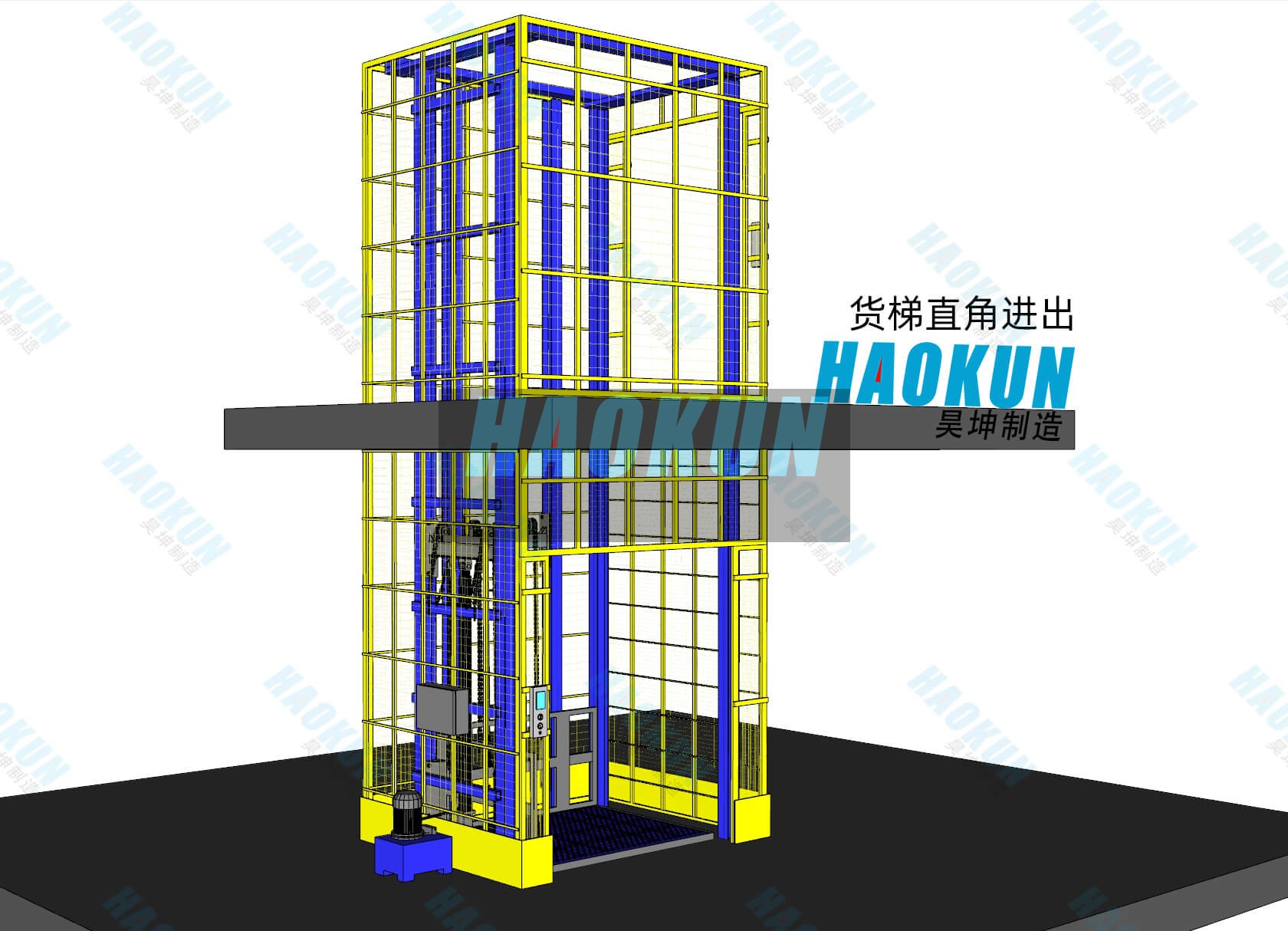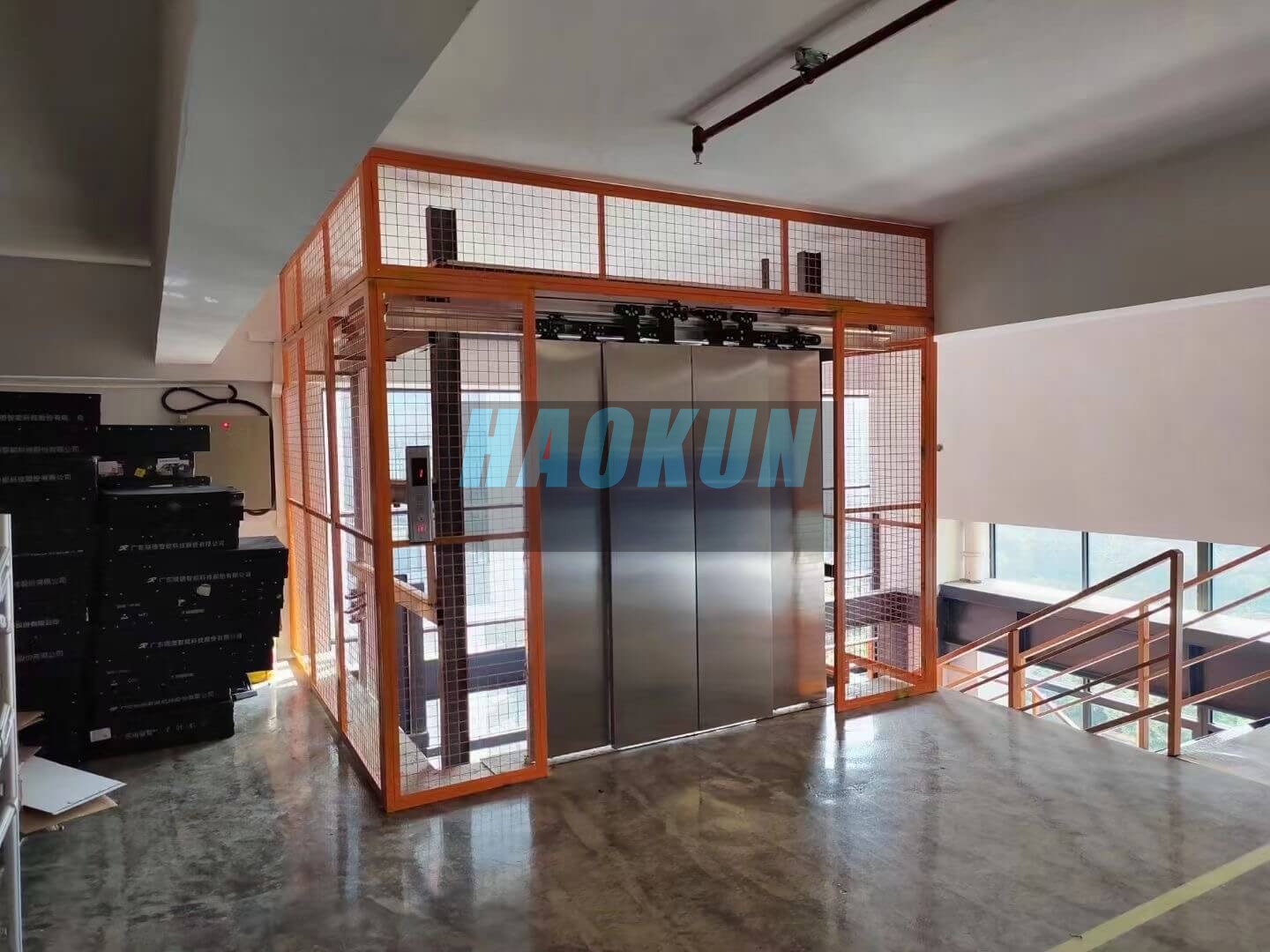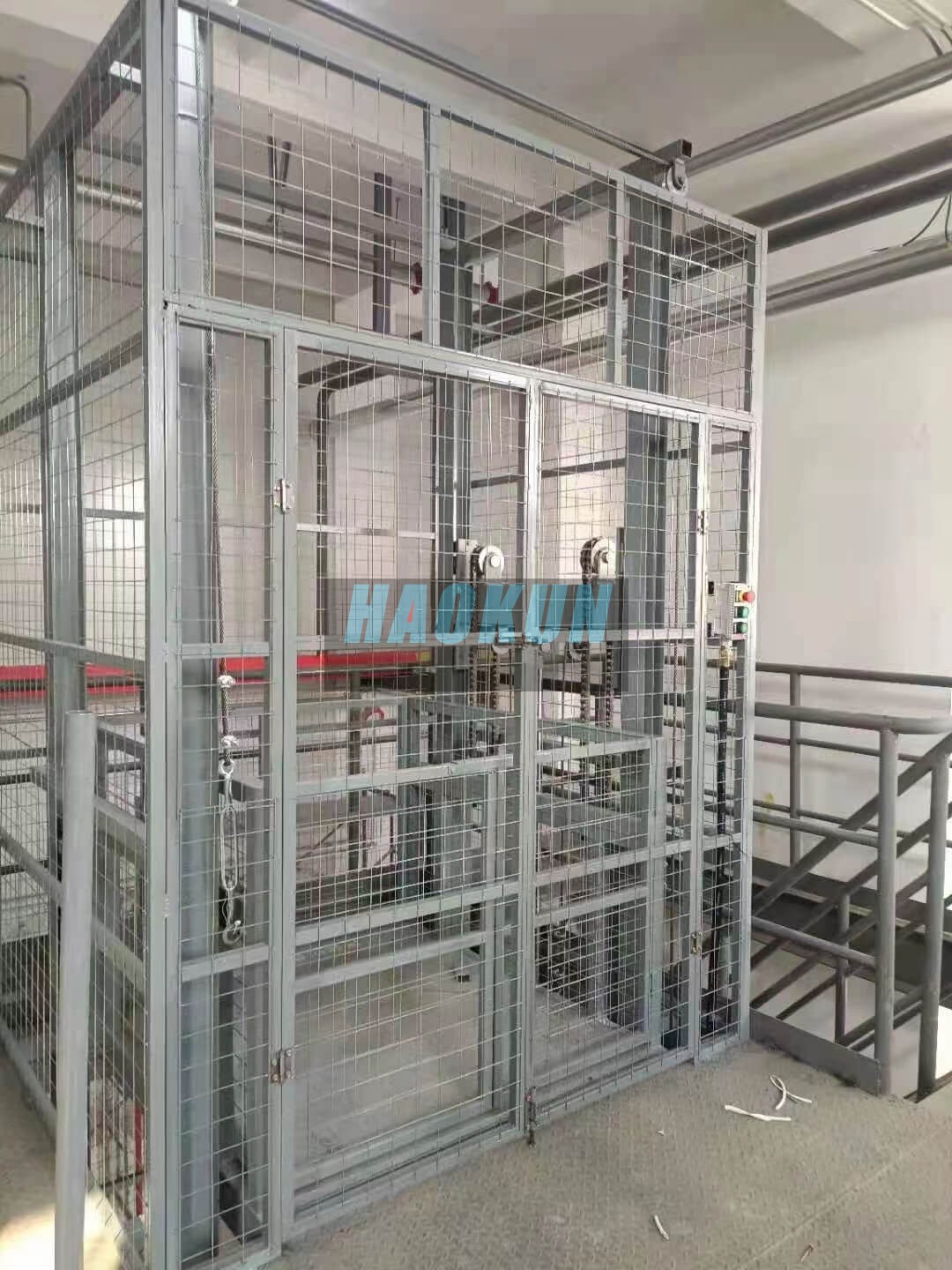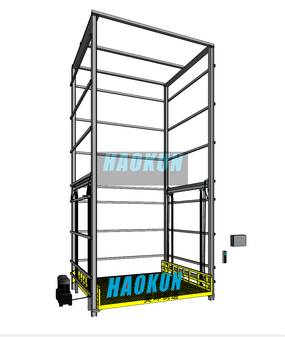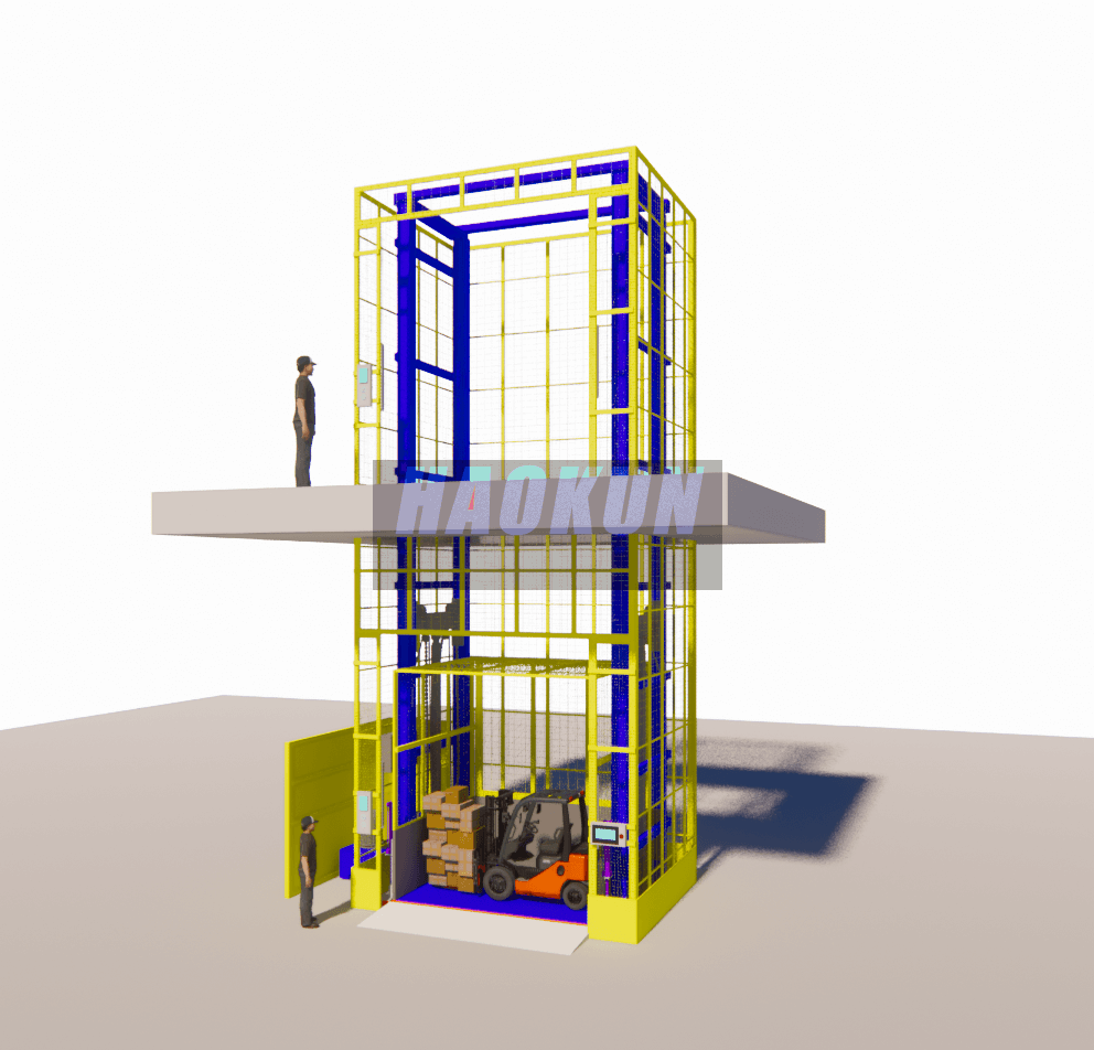 The HAOKUN Multi-Guide Rail Cargo Lift employs a multi-rail synchronous structural design, enhancing operational stability and