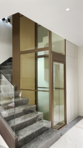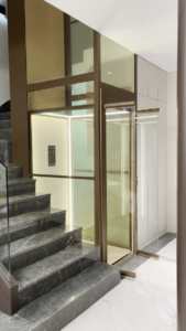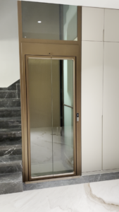 The aluminum alloy shaft is finished in an elegant coffee gold colour, which shines beautifully under indoor lighting and blends perfectly with the overall home decoration, exuding a sense of luxury and refinement. It comes with automatic double sliding doors that bring a strong sense of intelligence and great convenience for residents entering and exiting. The design is highly friendly and suitable for wheelchairs, strollers, and the elderly, making daily vertical travel safer, easier, and more dignified.